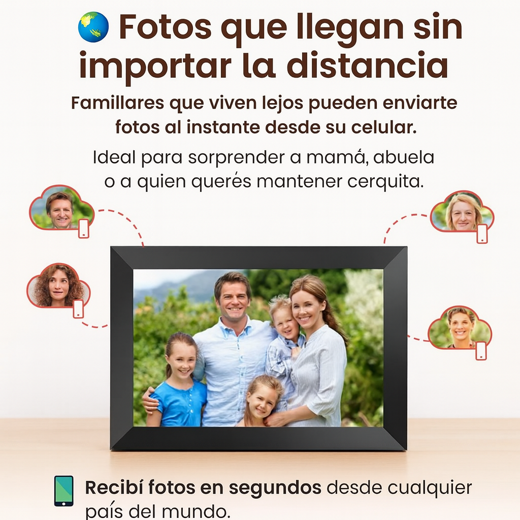 Con su tecnología FRAMEO permite conectarse desde cualquier parte del mundo y enviar tus fotos
